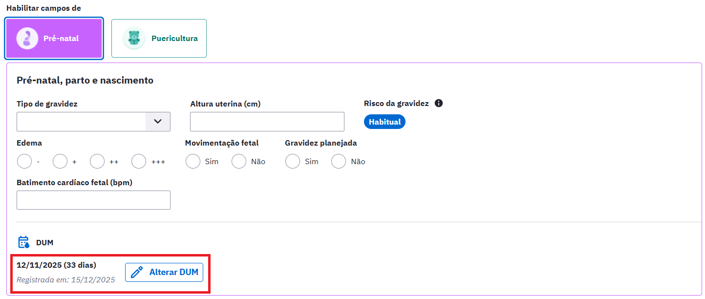 - Ajuste no fluxo de preenchimento da DUM nos atendimentos de seguimento de pré-natal, tornando o campo opcional a partir do segundo atendimento.