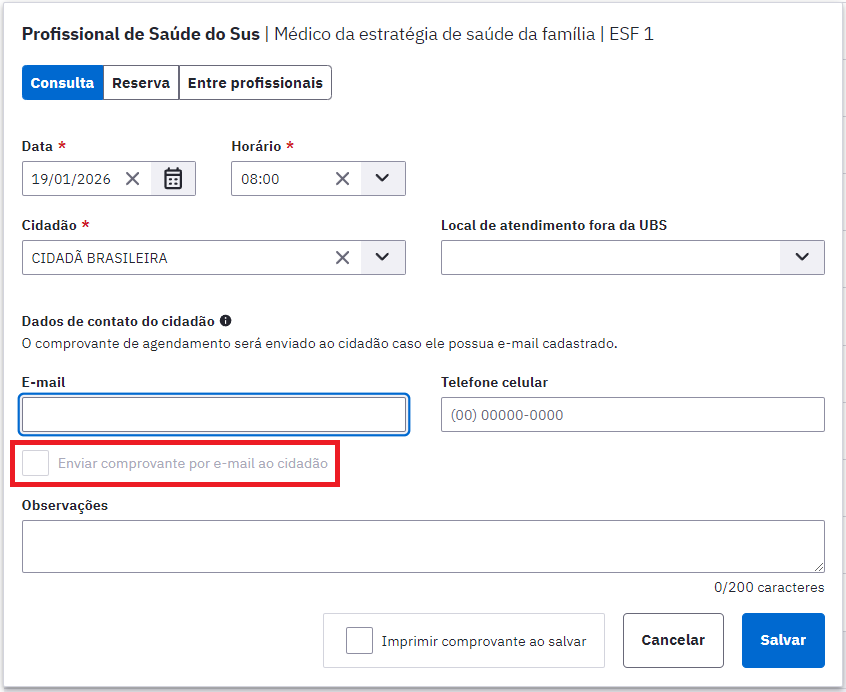 - A agenda foi atualizada com uma opção que permite ao profissional decidir se o e-mail sobre uma consulta ou agendamento deve ser enviado ao cidadão.