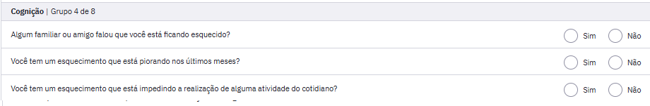 Você tem um esquecimento que está impedindo a realização de alguma atividade do cotidiado? | Sim (02 pontos) - Não (0 ponto). |