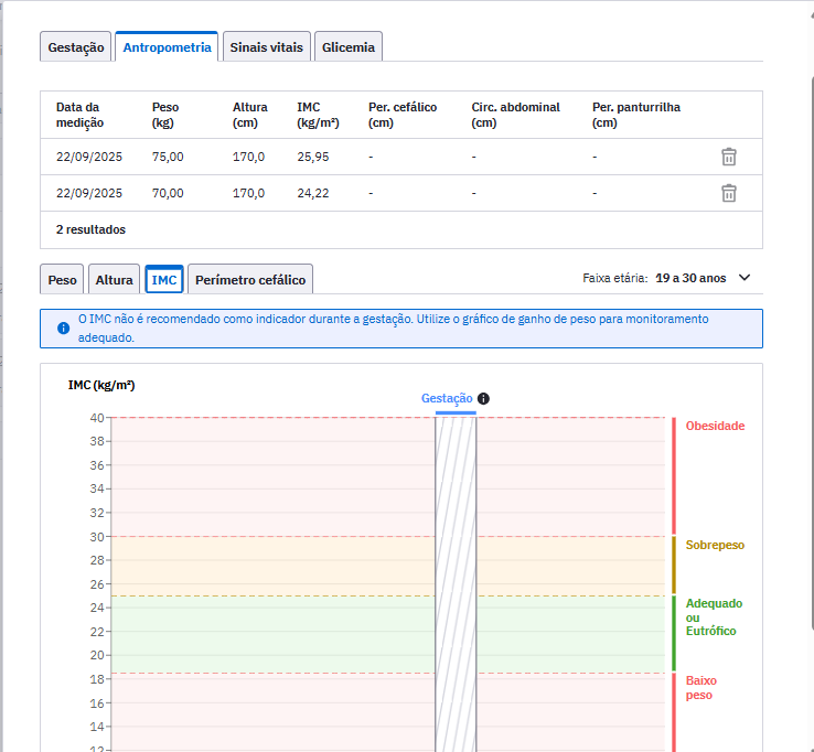 Se forem preenchidos os grupos Antropometria, no que se refere a peso e altura, Sinais vitais e Glicemia, os procedimentos que correspondem a essas ações serão inseridos no grupo Procedimentos realizados automaticamente.
