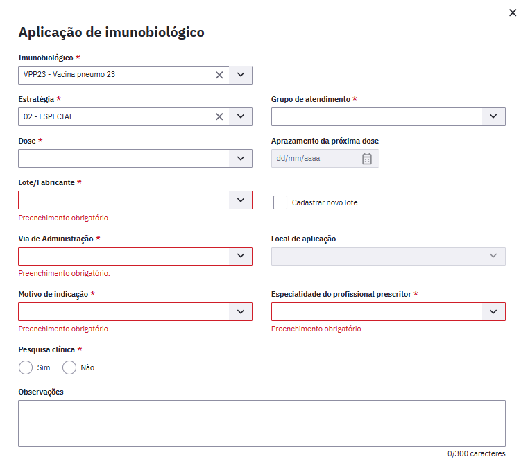 Caso o cidadão seja incluído na lista de atendimento para a aplicação de vacinas deve ser marcado a opção "Vacina" para que a equipe da sala de vacina identifique-o na lista de atendimento e realize o registro da aplicação.