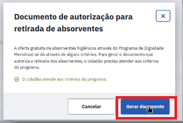 Abaixo, aparecerá a mensagem se o cidadão atende aos critérios do Programa e então o profissional poderá gerar o documento.