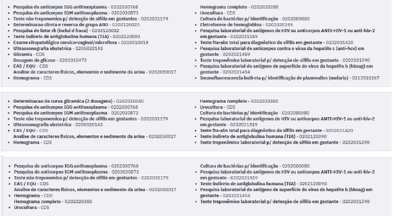 - Foram inclusas atualizações nos grupos de exames para adequação à competência SIGTAP 08/2025, os grupos foram: "Gestante 1º trimestre", "Gestante 2º trimestre" e "Gestante 3º trimestre".