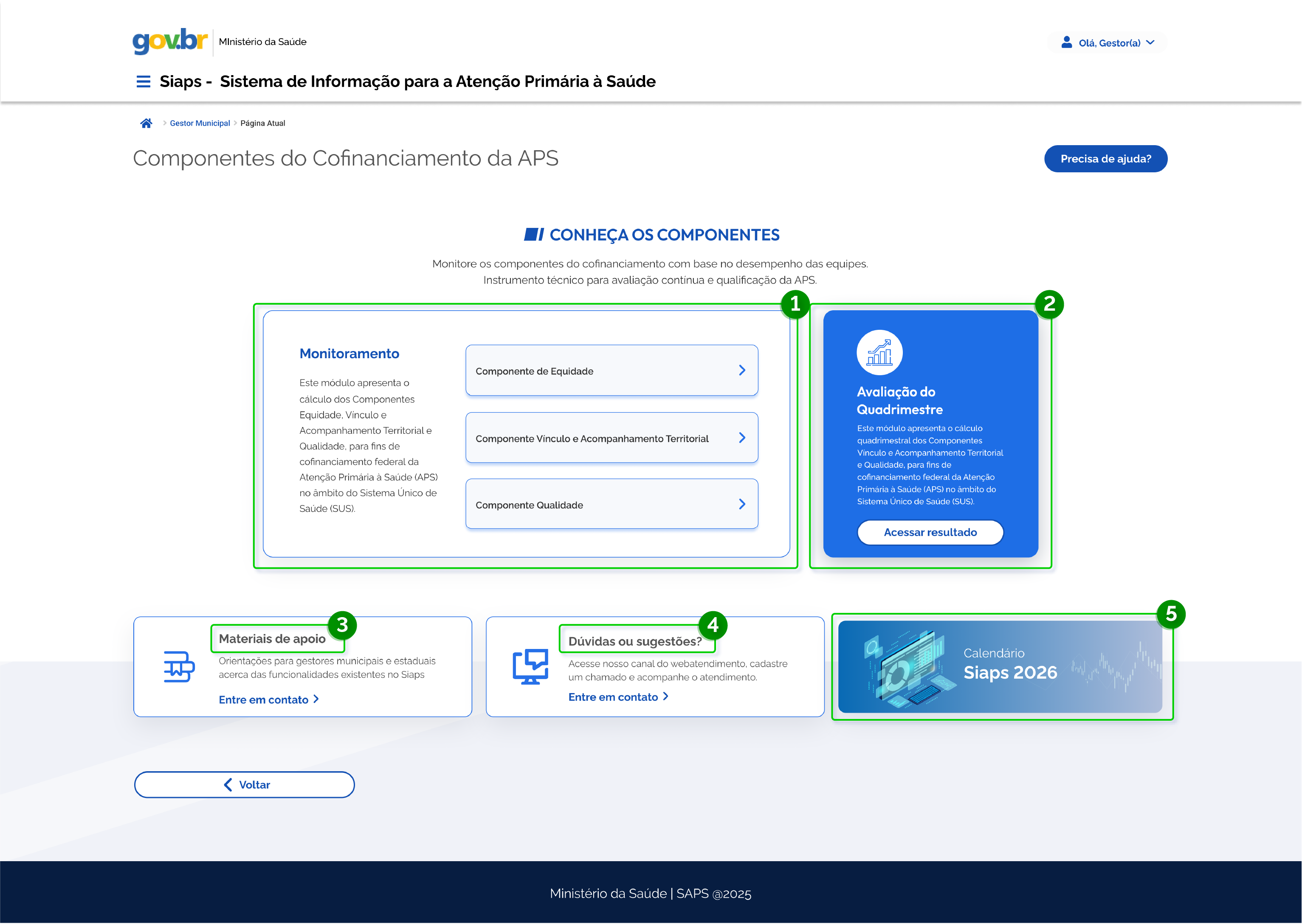 Nesse contexto, os Componentes II e III do Cofinanciamento Federal da APS, no Siaps, apresentam as visualizações do Monitoramento e Resultado do Quadrimestre.