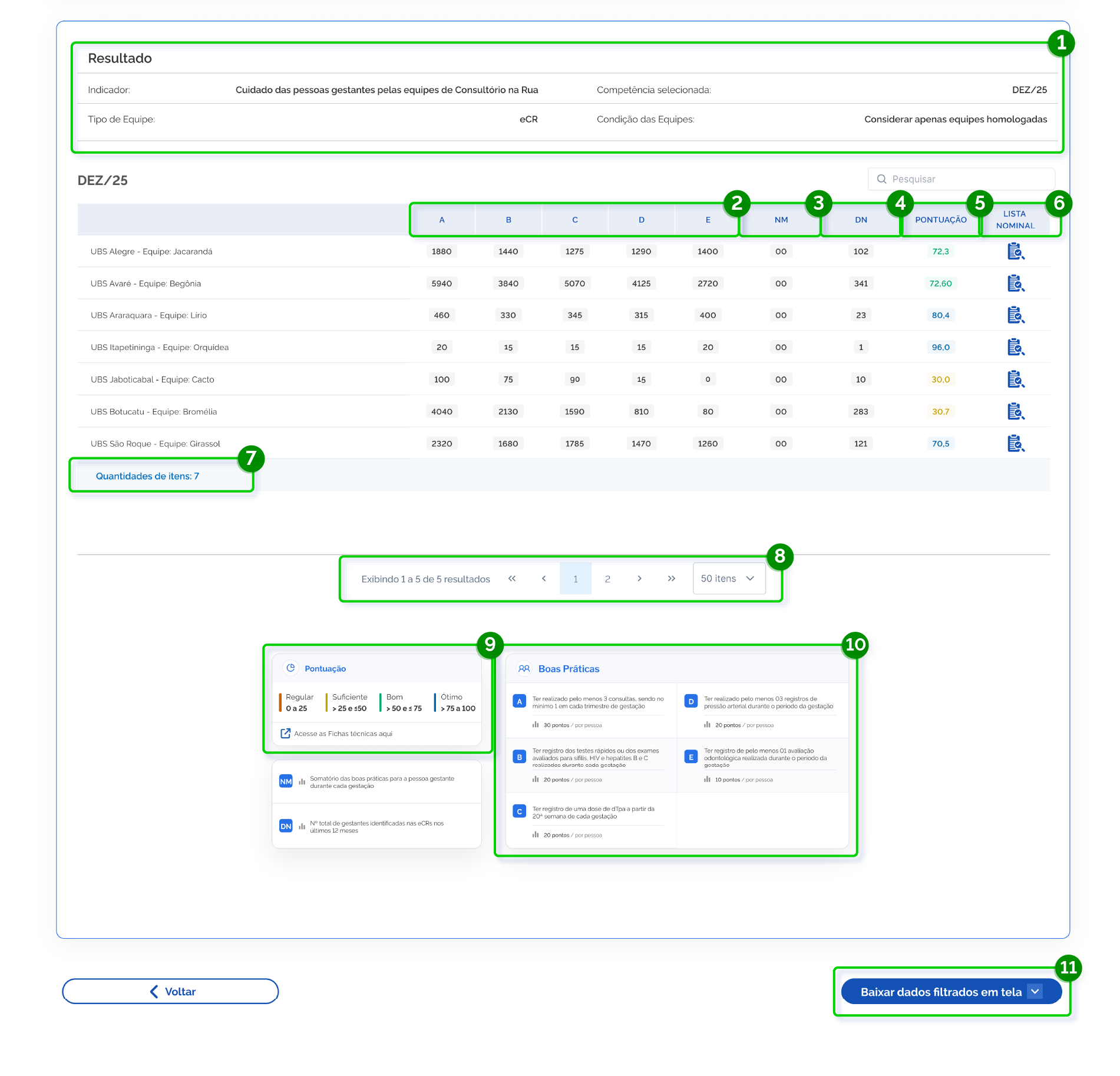 10. Legenda das boas práticas: descrição das boas práticas do indicador.