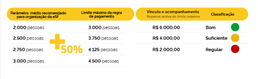 Durante a etapa de implantação da nova metodologia (20 parcelas — maio/2024 a dezembro/2025) as equipes receberão no componente de qualidade referente à classificação “bom”, conforme descrito a seguir: